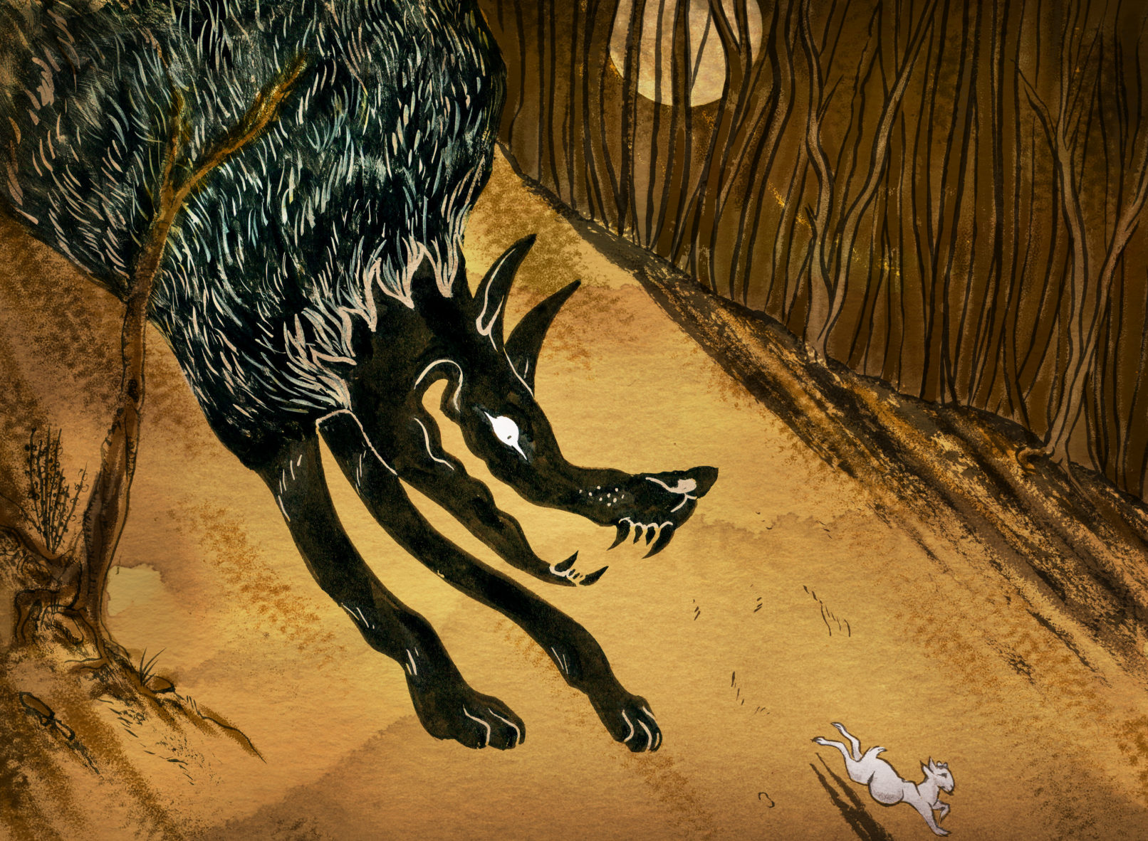 Illustration for the Aesop’s fable “The Wolf & the Kid”.